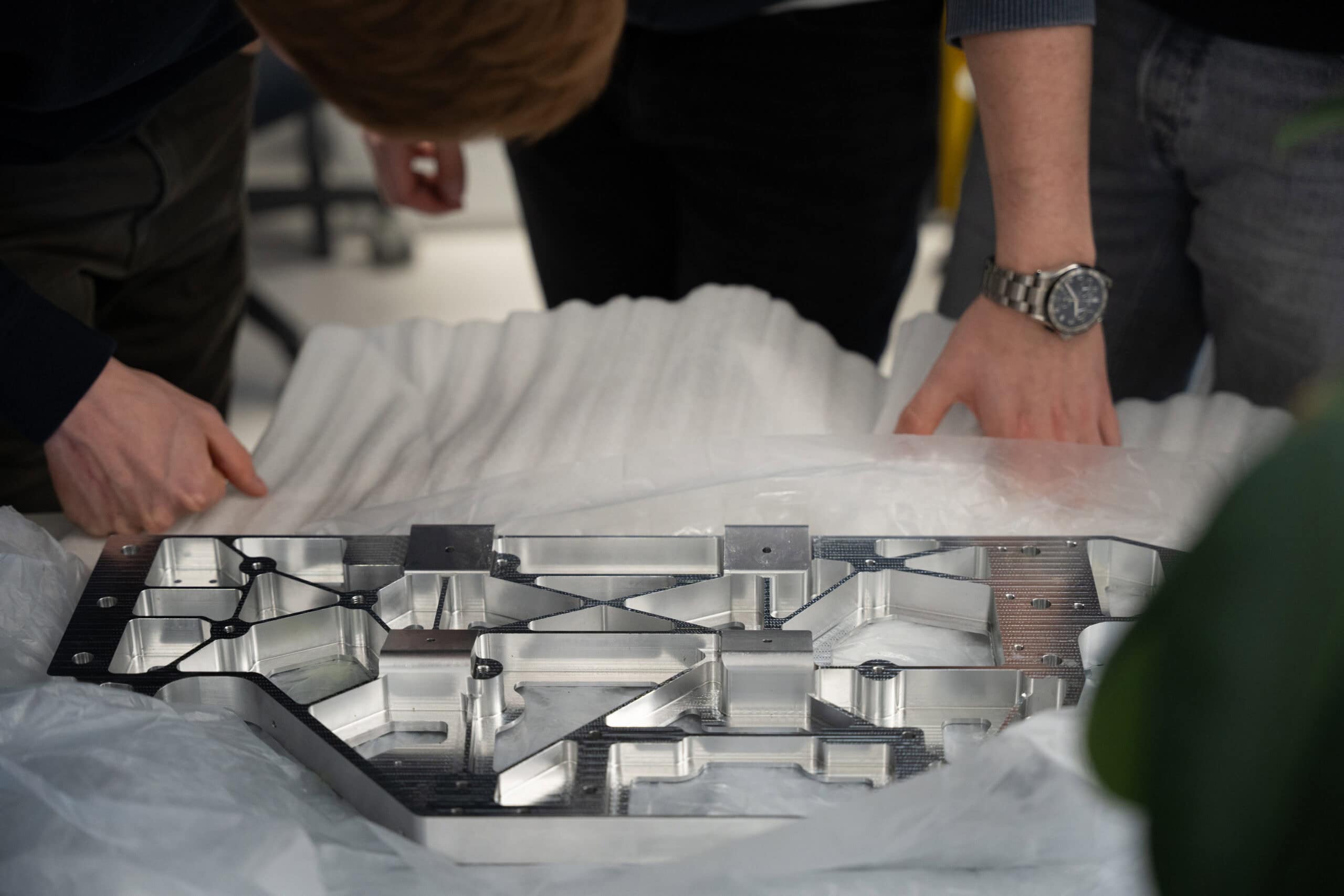 在後續的製造過程中,我們在內部開發了大多數結構和系統部件,採用了碳纖維、銑削鋁材和鈑金相結合的方式。我們重點考慮了重量效率、裝配便捷性以及長期可維護性。每個部件都以製造為核心進行設計——盡量減少不必要的加工工序,避免結構過於複雜。對於那些對精度和結構可靠性要求極高的部件(如頂板),外包加工不僅有幫助,更是確保項目持續推進的關鍵。